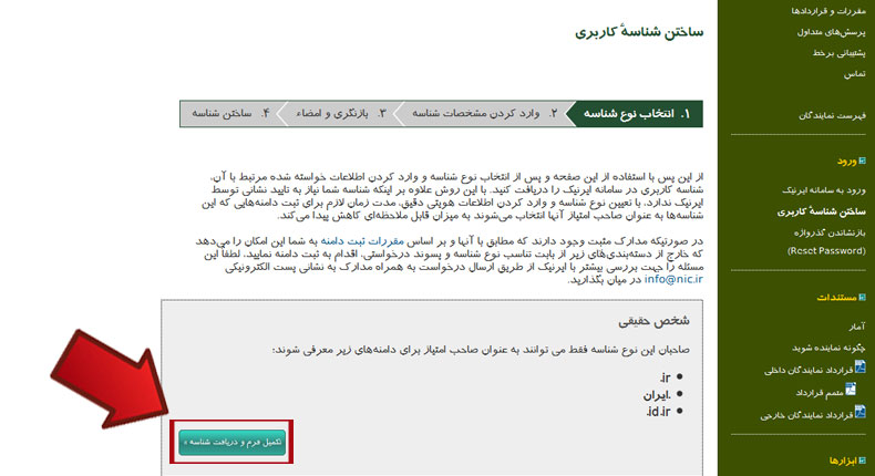 پس از انتخاب نوع شناسه روی گزینه تکمیل فرم و دریافت شناسه آن قسمت کلیک کنید .