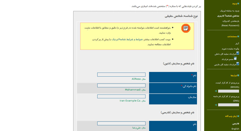 شناسه شخص حقیقی برای ثبت دامنه ir . ، ایران . ، id.ir . می باشد