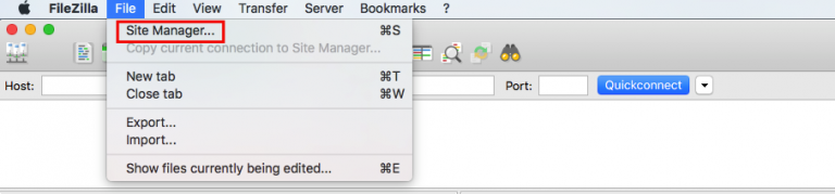 2-روی منوی file کلیک کنید و سپس گزینه site manager را انتخاب کنید.